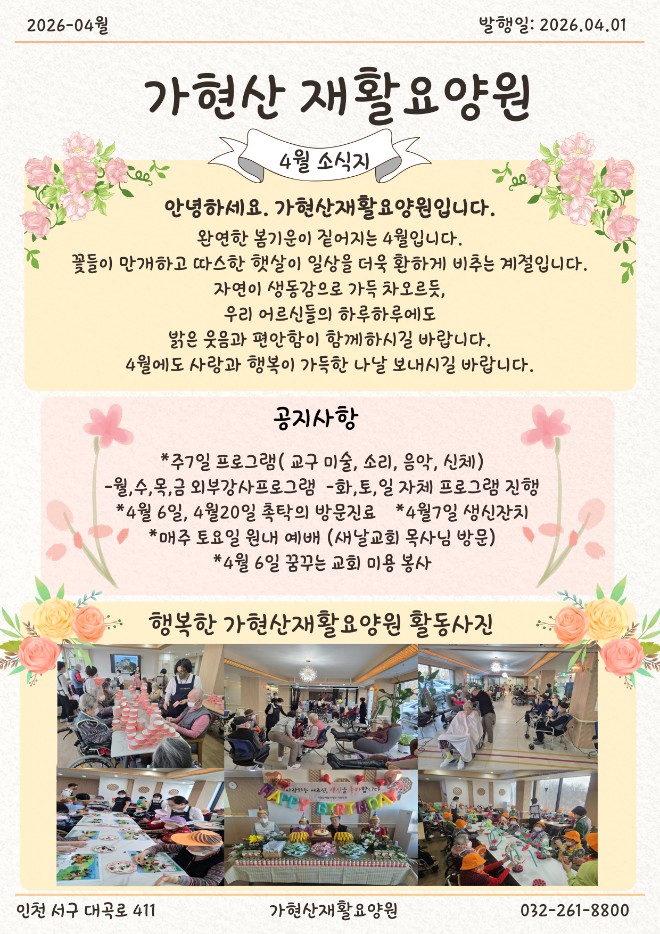2026년 가현산 재활요양원 4월 소식지입니다^^ |