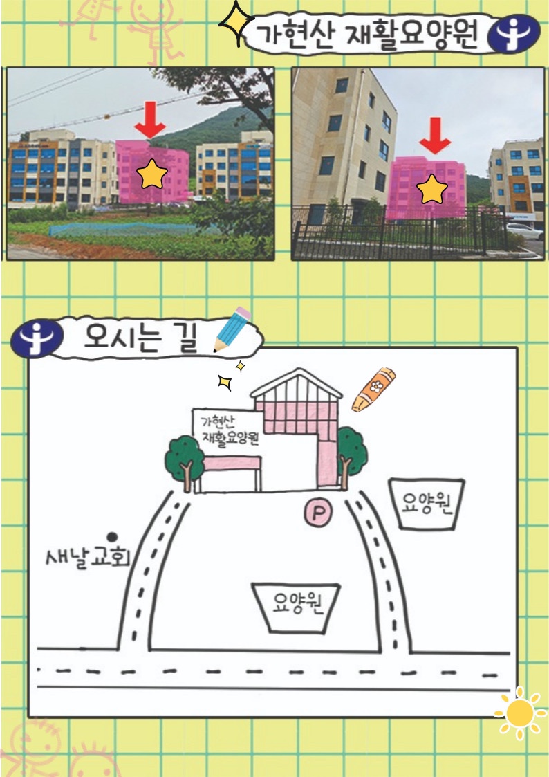 | 주소 인천 서구 대곡로 411 (대곡동) 가현산재활요양원 대표전화 032-261-8800 / 팩스 032-261-8801 대중교통 이용방법 |